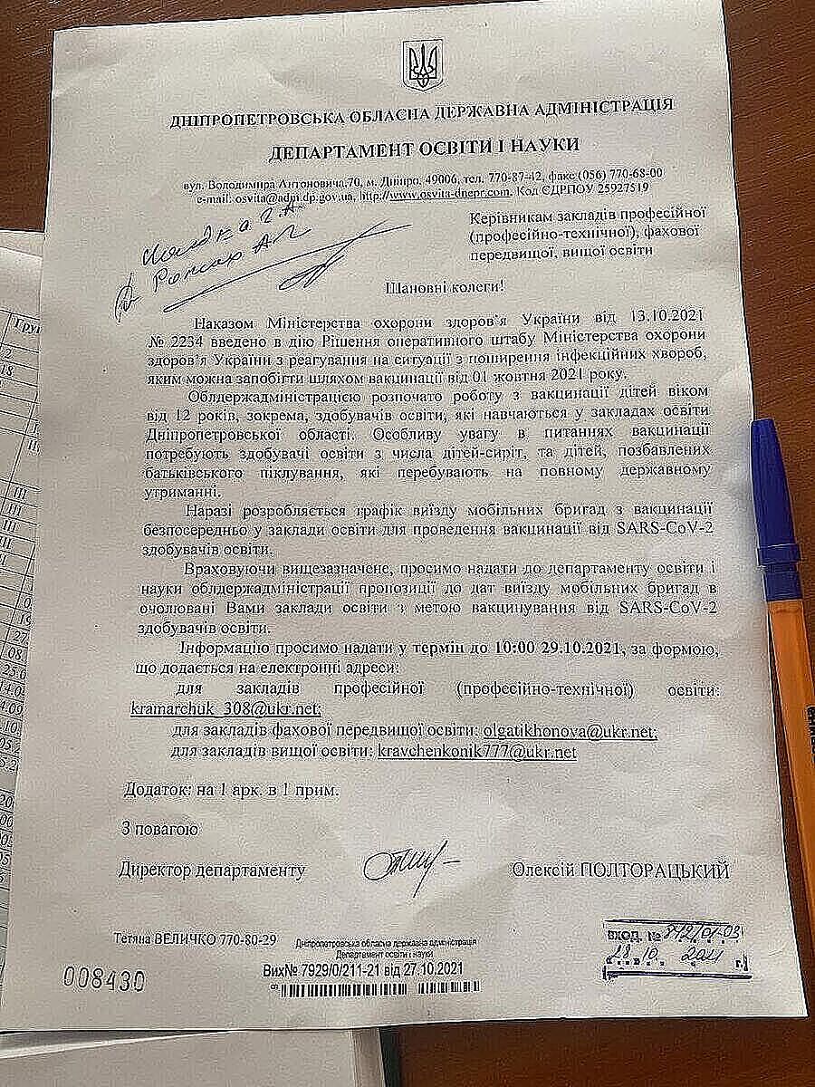 Это уже ’переприказ’ Департамента освіти і науки Днепровской области. А на осонвном, на который все и ссылаются, действительно нет ни подписей ни печатей.