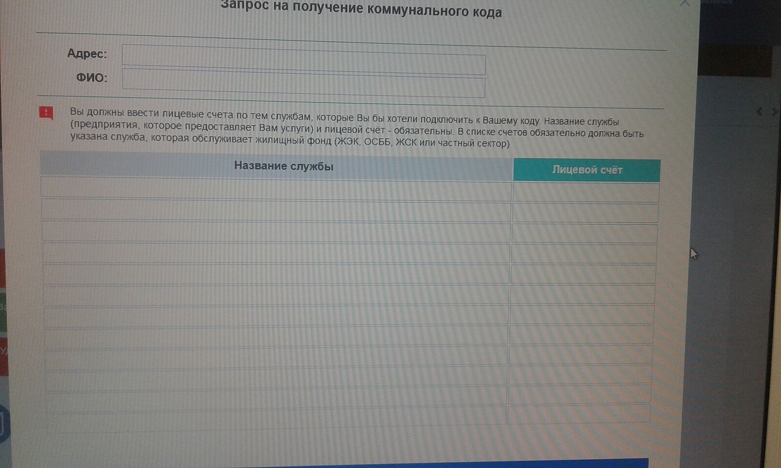 Так я в личном кабинете. Но там пусто. Я заказала коммунальный код, он не пришел за 3 дня. Без него нет доступа к счетам