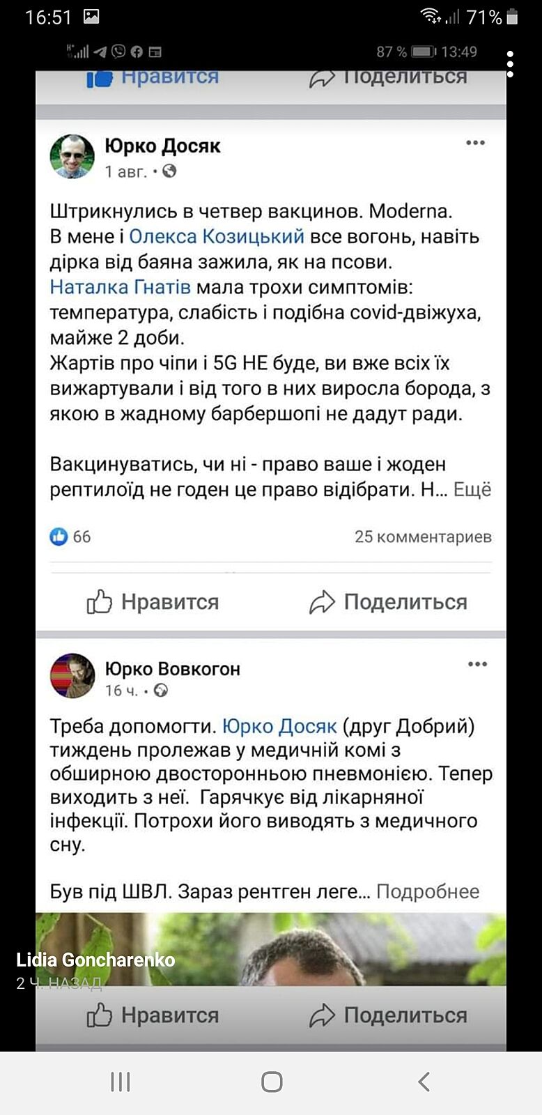 Соседка, бабушка после 2 прививки, заболела, ковид, двухсторонняя пневмония, лежала в больнице под кислородом, уже дома, но у неё много хронических заболеваний