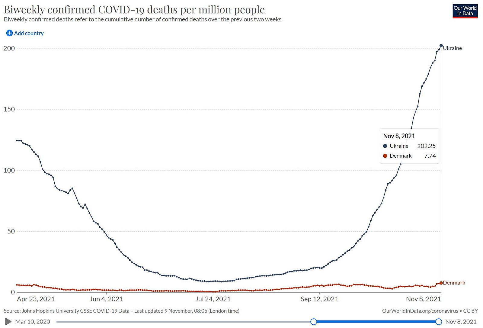 202 смертей на миллион в Украине против 8 в Дании это не поразительно отличается?