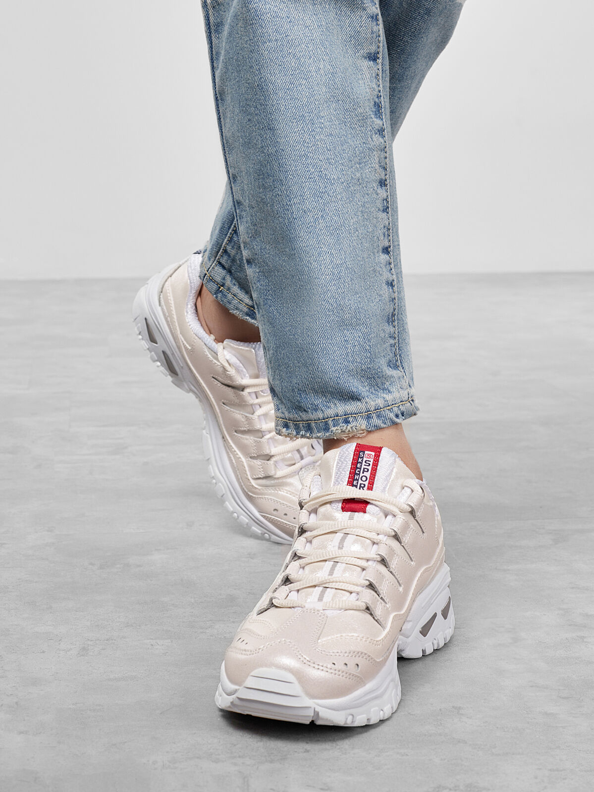 На эту погоду кроссовки, но они не спортивные, потом сапоги, мне так комфортно. Я не шмоточница, ботинки не люблю