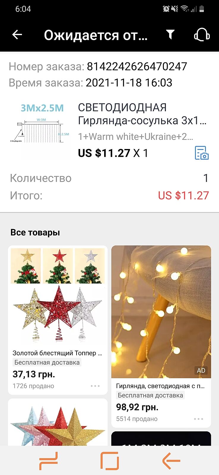 А сегодня мне вернули деньги за ту гирлянду-штору и я решила заказать снова. Взяла сразу две)) 3×3 и 2×2. Заказ приняли.