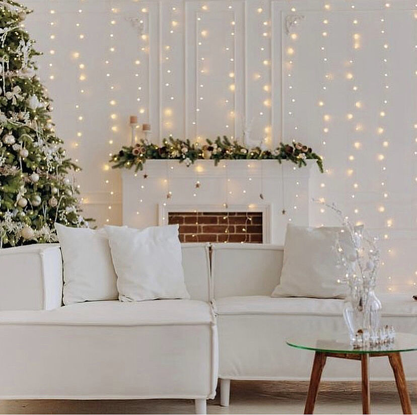 Купите фотообои. Что вы там любите, камин, оленя, с любым изображением можно выбрать. Вдоль обоев протянуть гирлянду с огнями, будет 2 Д эффект))