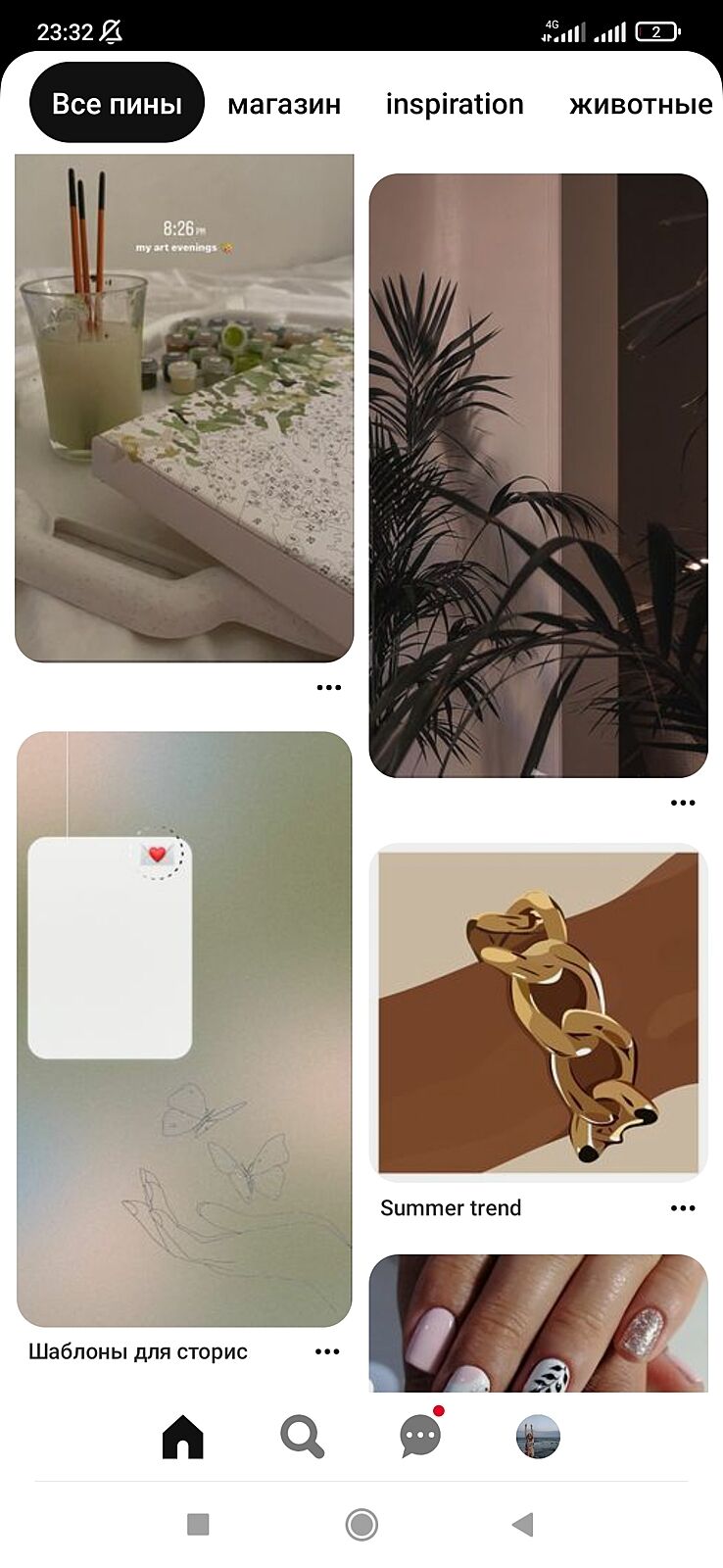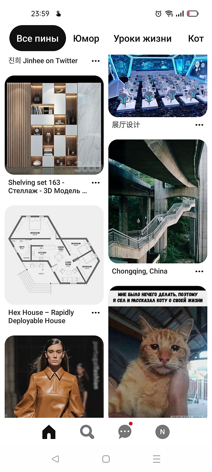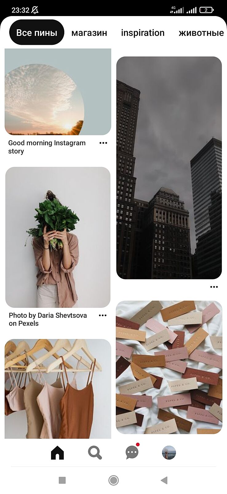 листайте, Пинтерест предлагает вам пины на основе ваших прошлых поисков и сохранок)