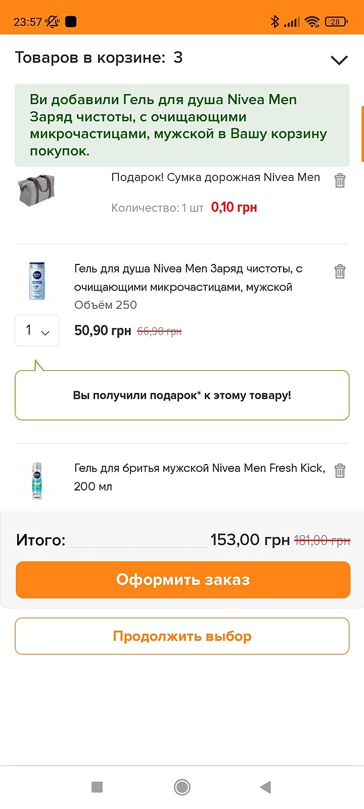 Акция Nivea Men на сумму от 149 грн. и сумка в подарок. Только в интернет-магазине