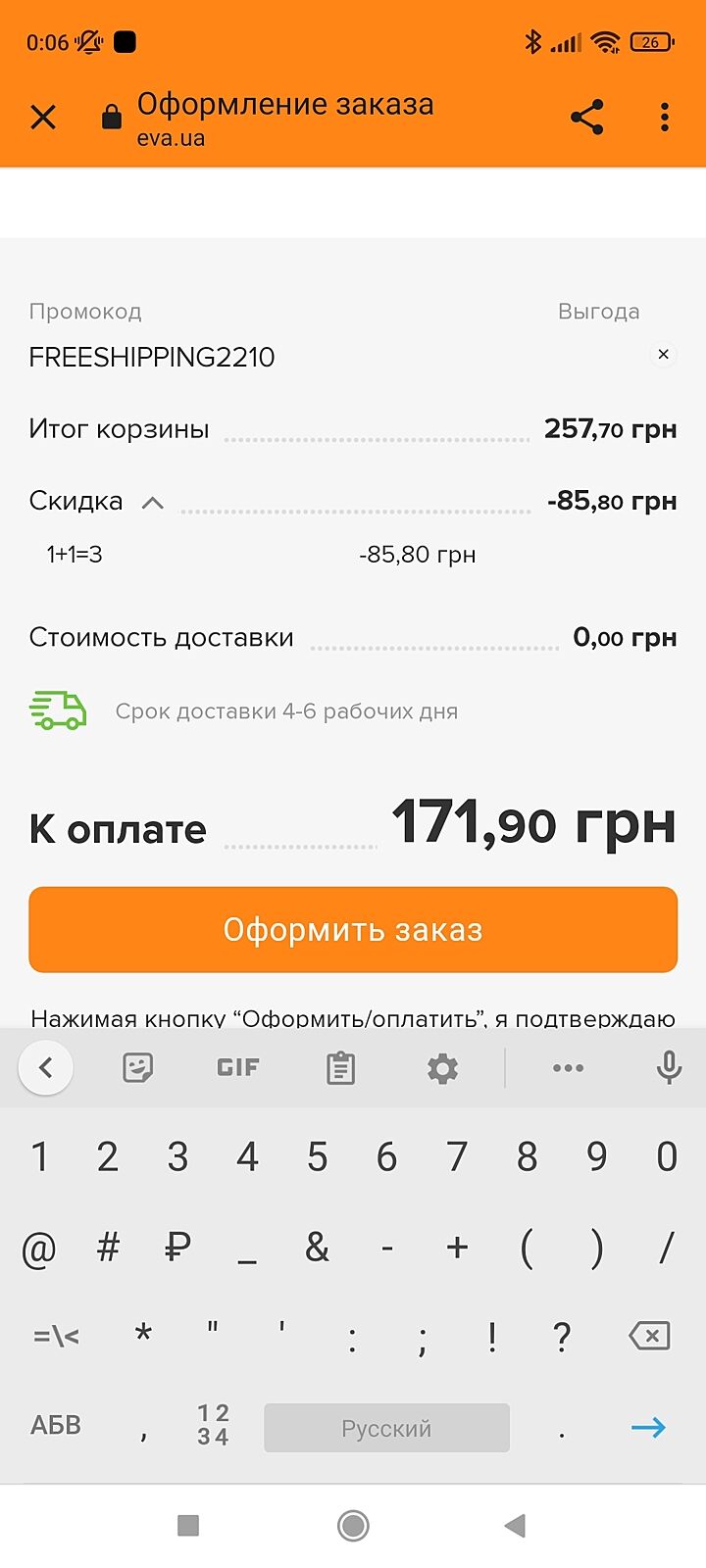промокод на бесплатную доставку для любой суммы FREESHIPPING2210