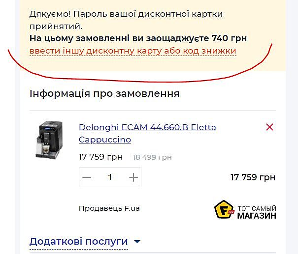 На f.ua со скидкой эта кофемашина стоит 17759.