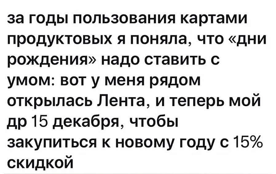 Я многодетная мать для магазинов игрушек. Вписала всех племянников, крестников, друзей дочки. Теперь перед их др у меня скидка.