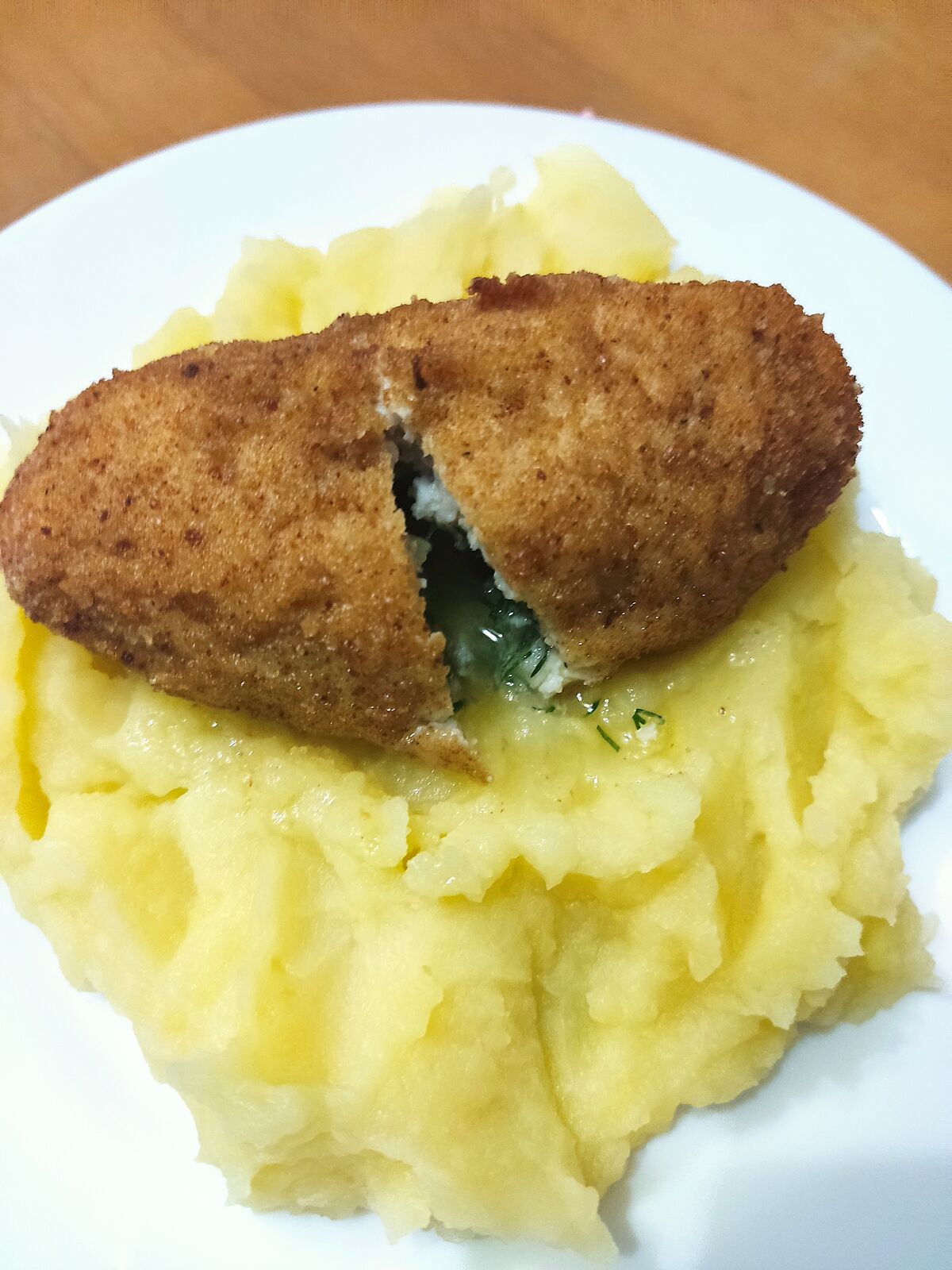 наш ужин еще не готов, но там все просто - пюре, курица из духовки и салат из молодой капусты