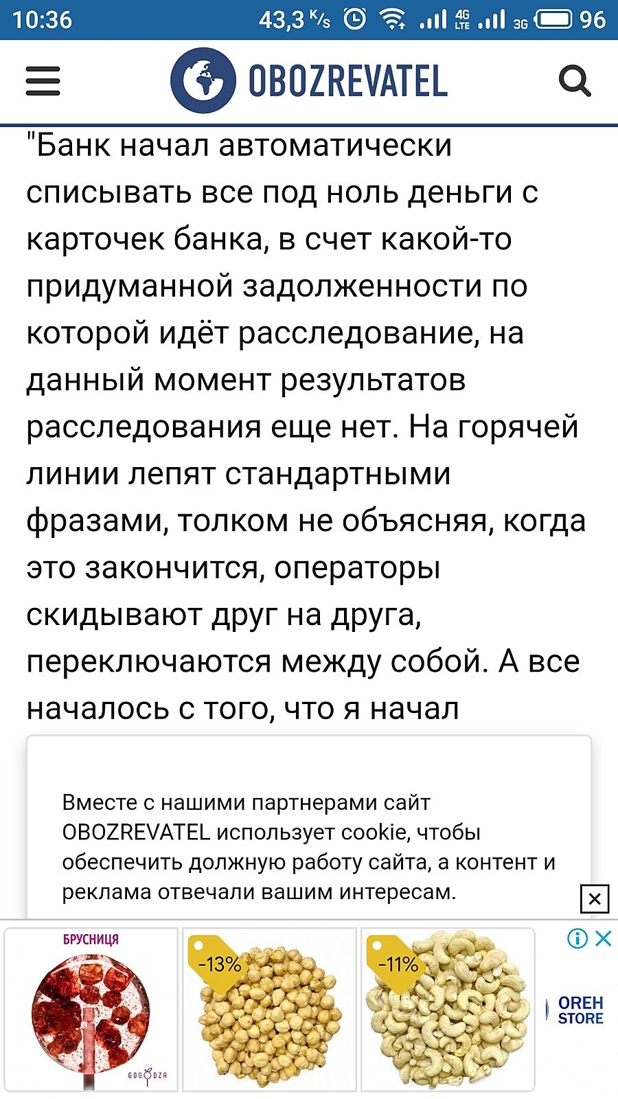 Длилось это около полугода, пока не стали с другой карты снимать деньги 50% в счет оплаты долга.