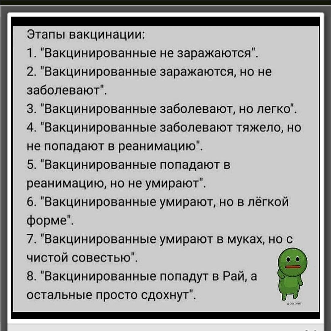 Привитые! Почему вы стали агрессивнее? Мне напоминает как укушеные зомби и нужно срочно укусить неукушеного. Что за обострение такое тотальное. Да мне пофиг кто привит а кто нет. Я не хочу прививку делать и на том точка. Если суждено заболеть, умереть и. Тд приму это как должно быть.