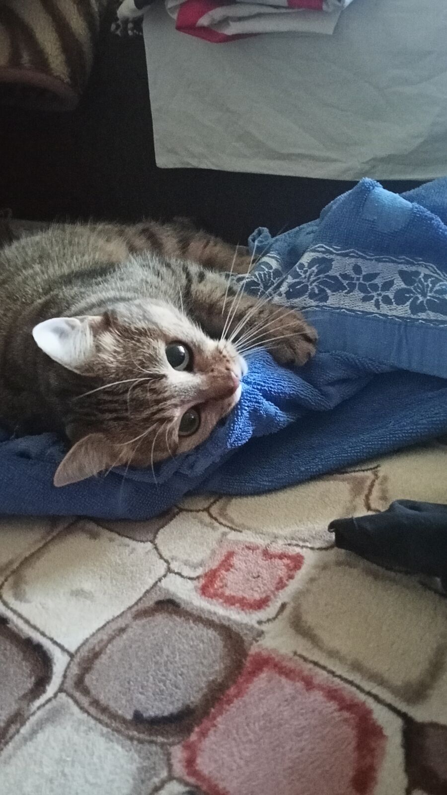 Только сняла бельё стиранное, и кошка уже в нем