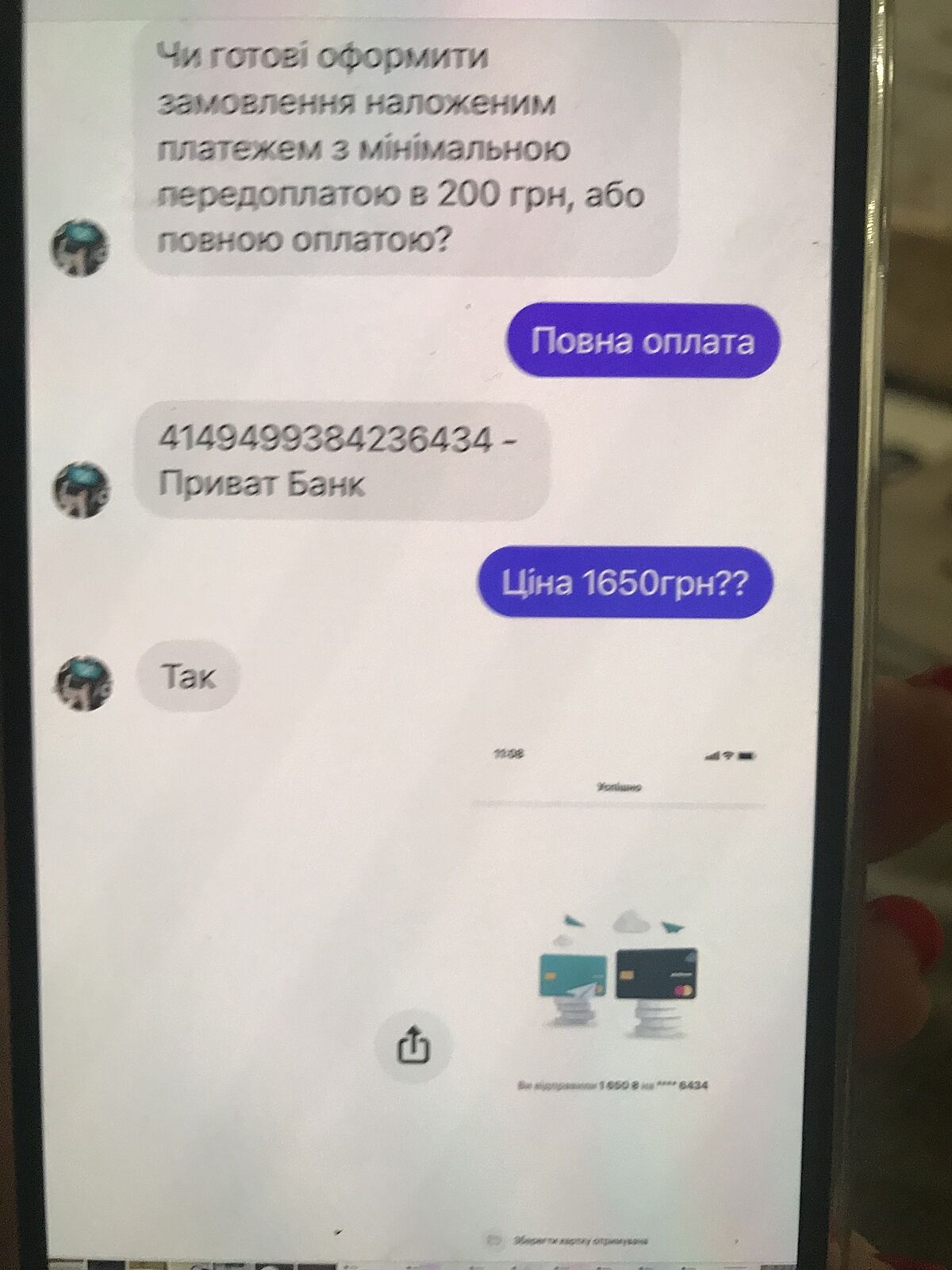 А ви колись як замовляли на ту саму картку скидали кошти?На днях взломали сторінку моєї знайомої і багато довірливих клієнтів попались,вони вивчили навіть манеру розмови що не розбереш, але картка всіх збила з пантелику і почали люди дзвонити.Аферисти писали що вибач моя картка наразі не активна поновлюю скинь будьласка на картку подруги
