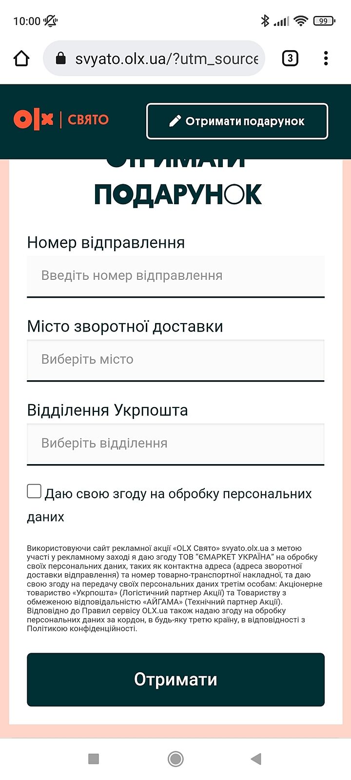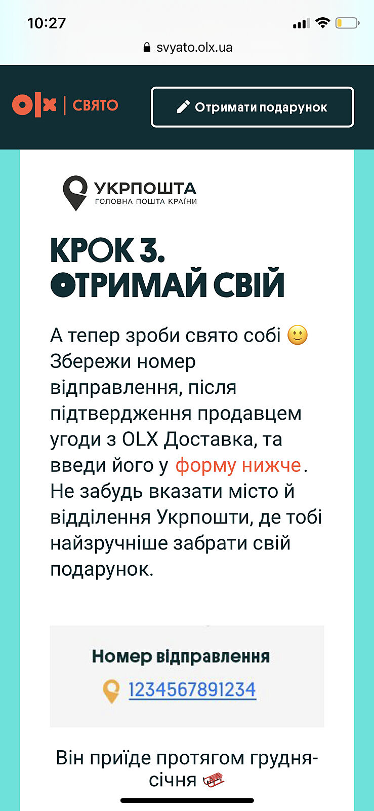 Номер посилку яку ви відправили у подарунок комусь. На олх зараз обмін подарунками, вибираєте цінову категорію та відправляєте комусь подарунок на цю суму, щоб отримати також подарунок щось потрібно заповнити ось таку форму
