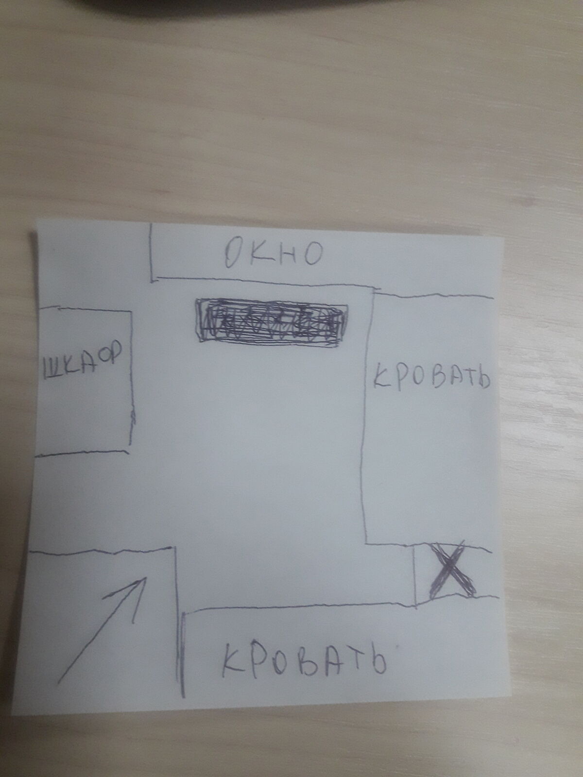 Крестиком показала, где сейчас работаю, но сидеть очень неудобно, ноги некуда поставить, столик маленький, стоит впритык к 2 кроватям.