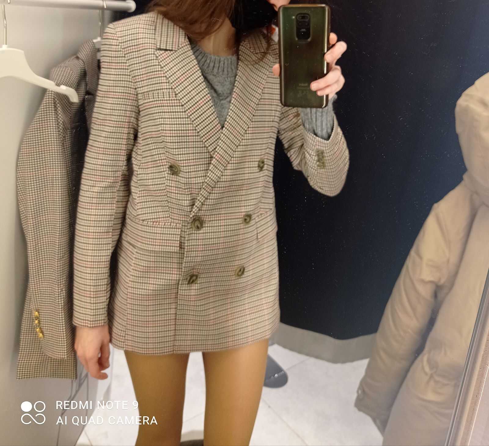 Ну они все на вас как будто маловаты. Рукав немного вроде коротковат. Зачем вы их меряете на свитер? Вы что га свитер собрались носить?
