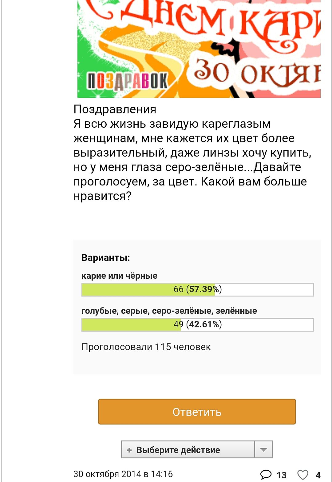 Вот даже тему старую нашла, большинство проголосовали за карие глаза