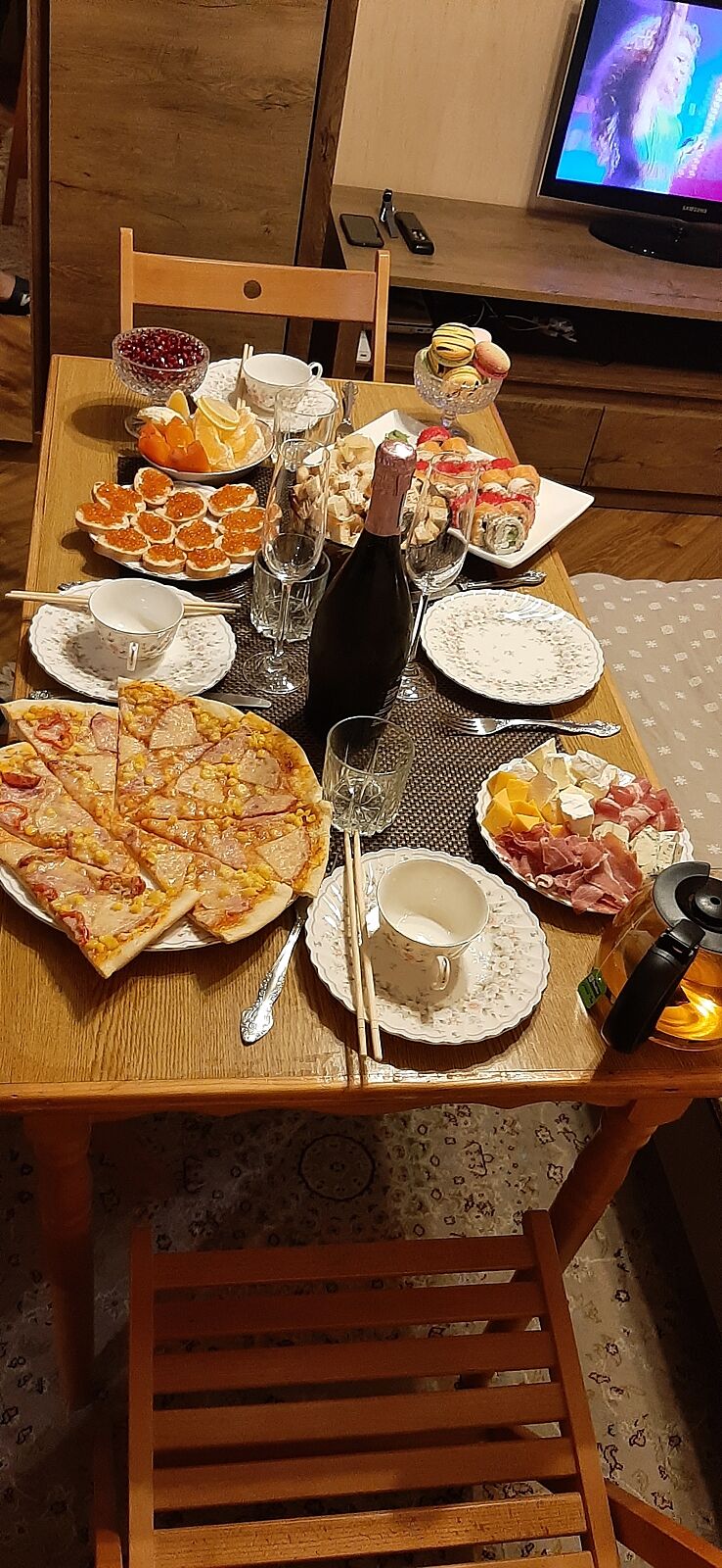 Но посоветовавшись с дочкой ( 10лет) решили , что на следующий год только закажем суши , пиццу и сделаем оливье