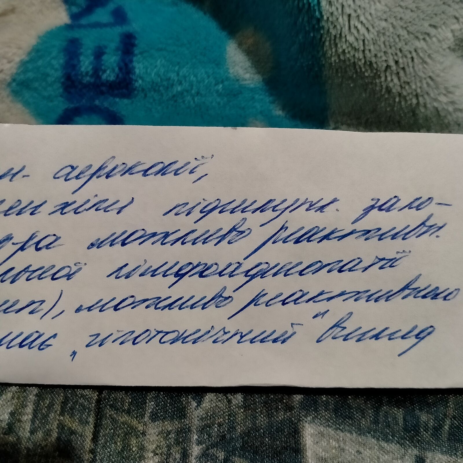 Ехоознаки вираженої аероколії (?), дифузних змін в паренхімі підшлункової залози неспецифічного характера, можливо реактивного генеза, мезентеріальної (?) лімфоаденопатії (проліферативний тип), можливо реактивного генеза, жовчний міхур має гіпертонічний вигляд.