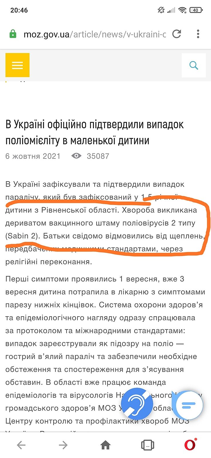 Да, и все молчат, что полиомиелит вакциноассоциированный. (((( Дикого полио уж давно нет в Украине, а от вакциноассоциированного вполне достаточно инактивированной вакцины.