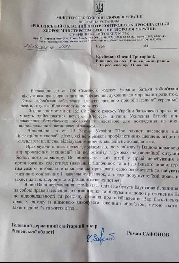 А те, кто будет отказываться от таких "нужных" прививок, будут получать такие письма.