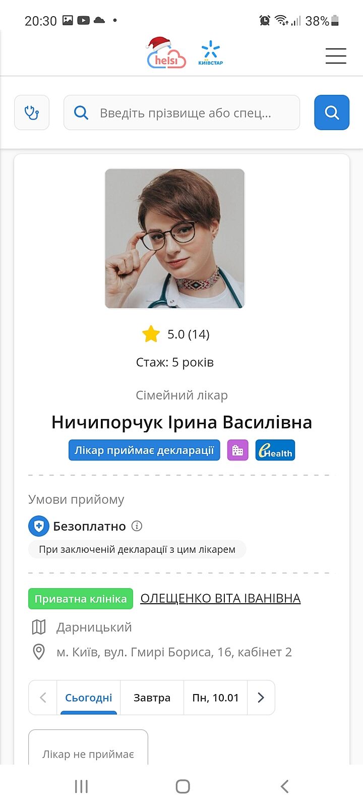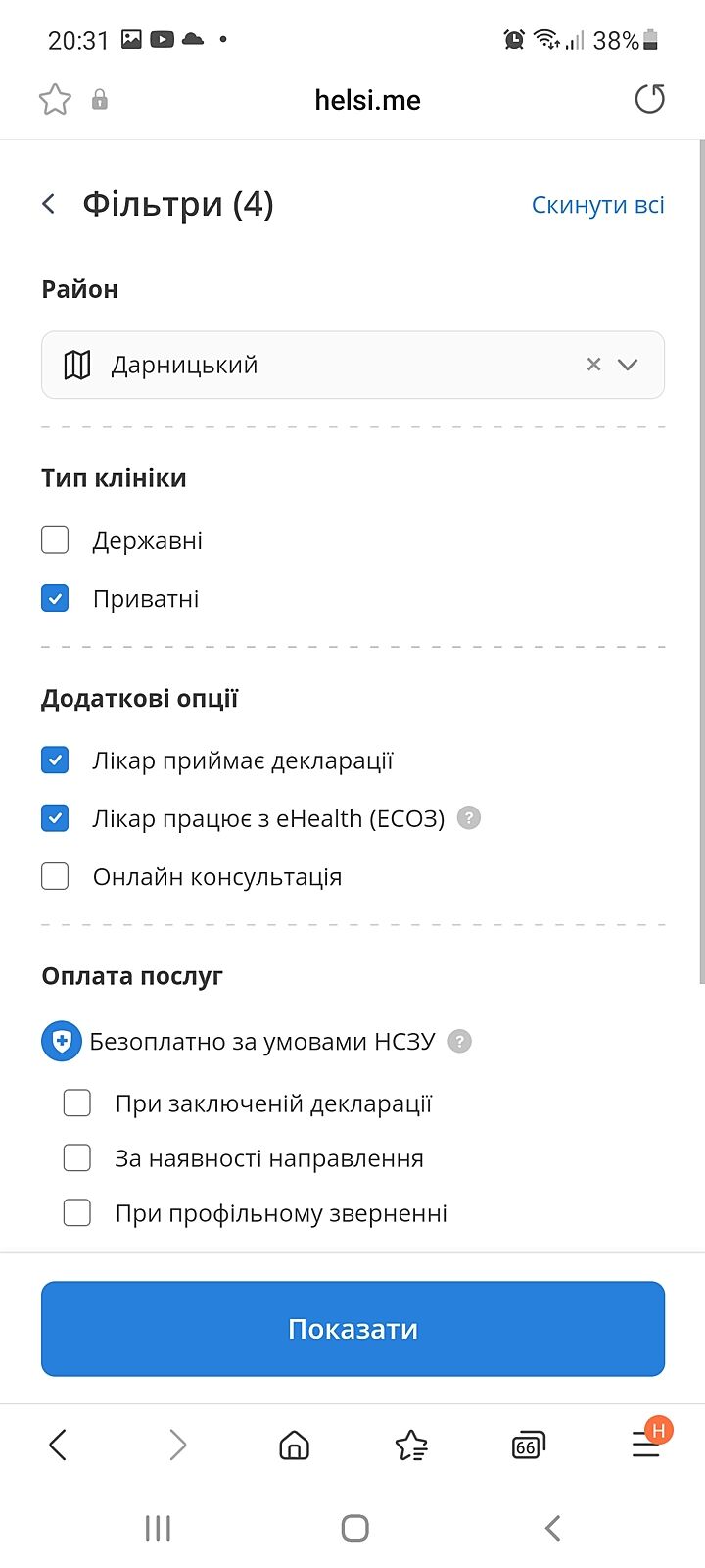 Через какой сайт или сервис можно посмотреть и записаться. Скачала хелси ми, но там почти нет врачей и запись на приём на конкретную дату, а не на декларацию. Хотим в частной клинике, в Районе Левобережной