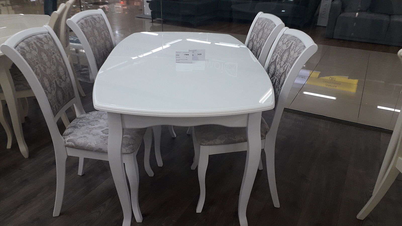 Стол со стеклянным покрытие около 15 т без стеклянного около 10 500.Стулья 2 480 шт.