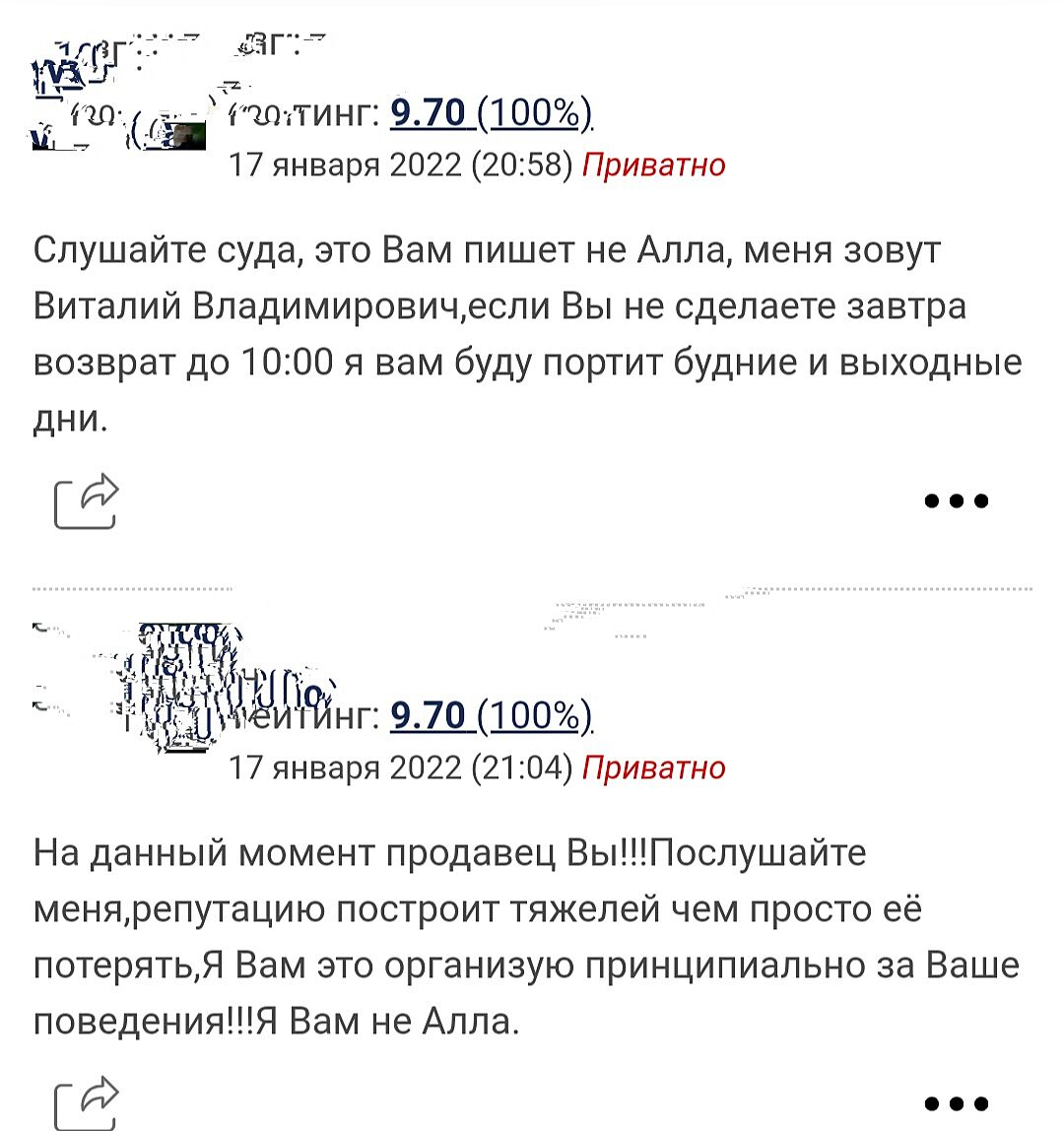 Забейте. Пусть забирают свою обувь, им назад пойдет посылка. Угрожальщикт великие. В блок их