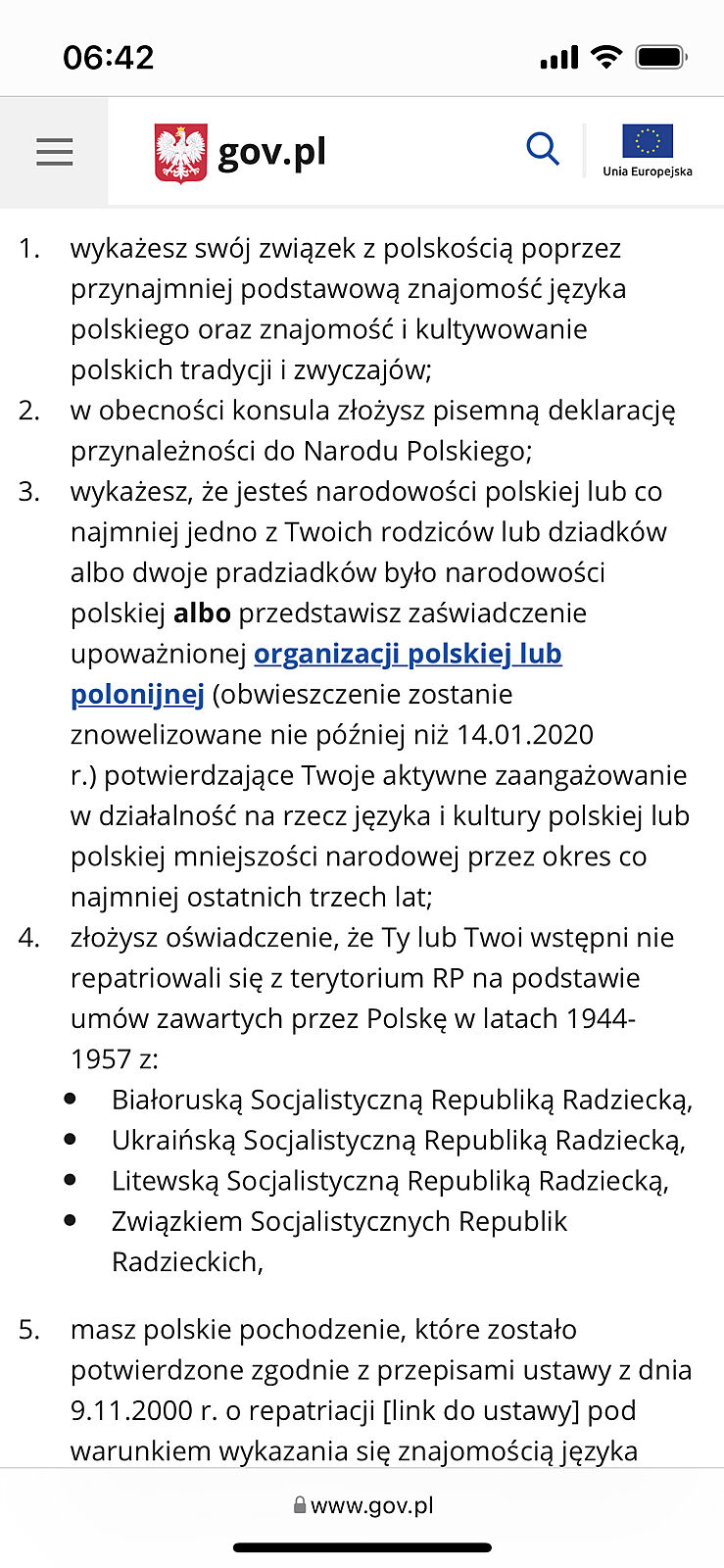Для карты поляка нужен либо один из родителей с подтвержденной национальностью, либо бабушка и дедушка - обое поляки.