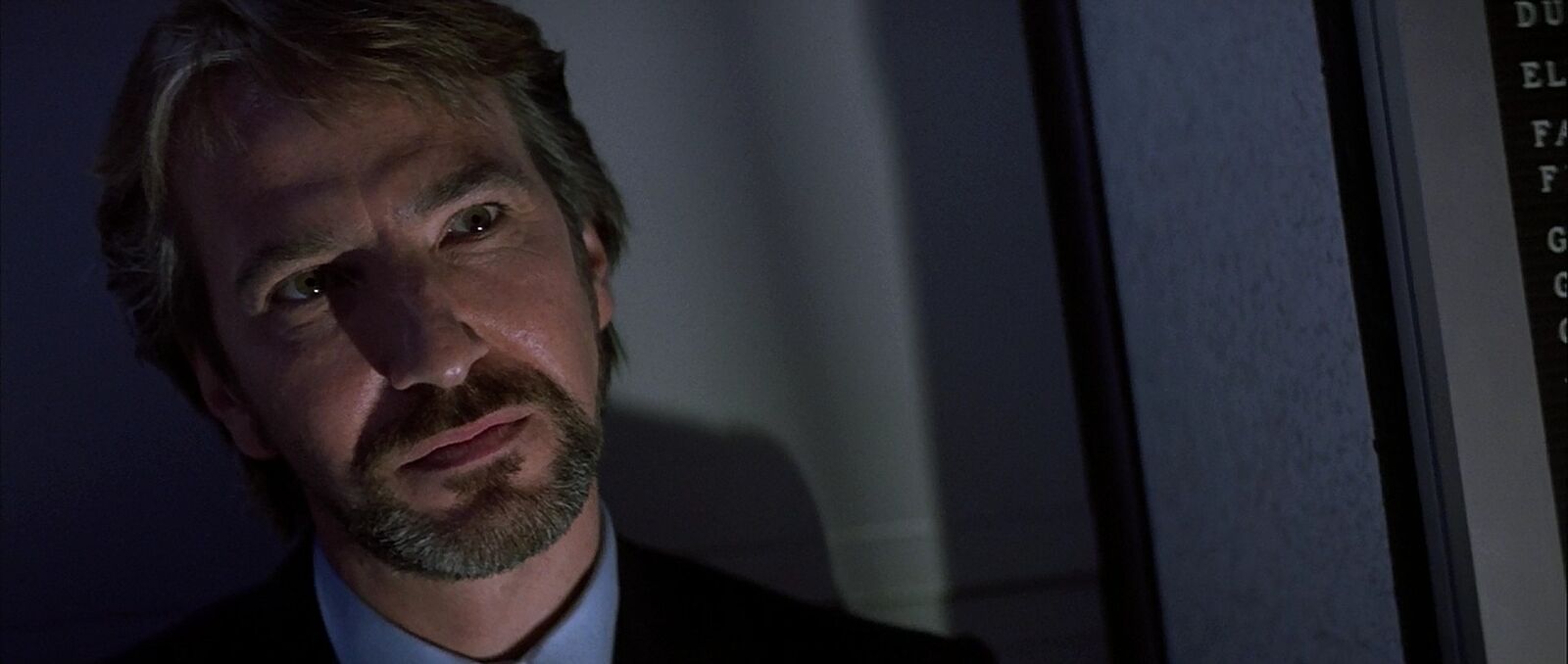 Вот, например, кадры из х/ф ’Крепкий орешек’, когда интересно наблюдать за изменившейся мимикой главного злодея, когда тот узнаёт, что герой Брюса Уиллиса — полицейский Джон Маклейн: