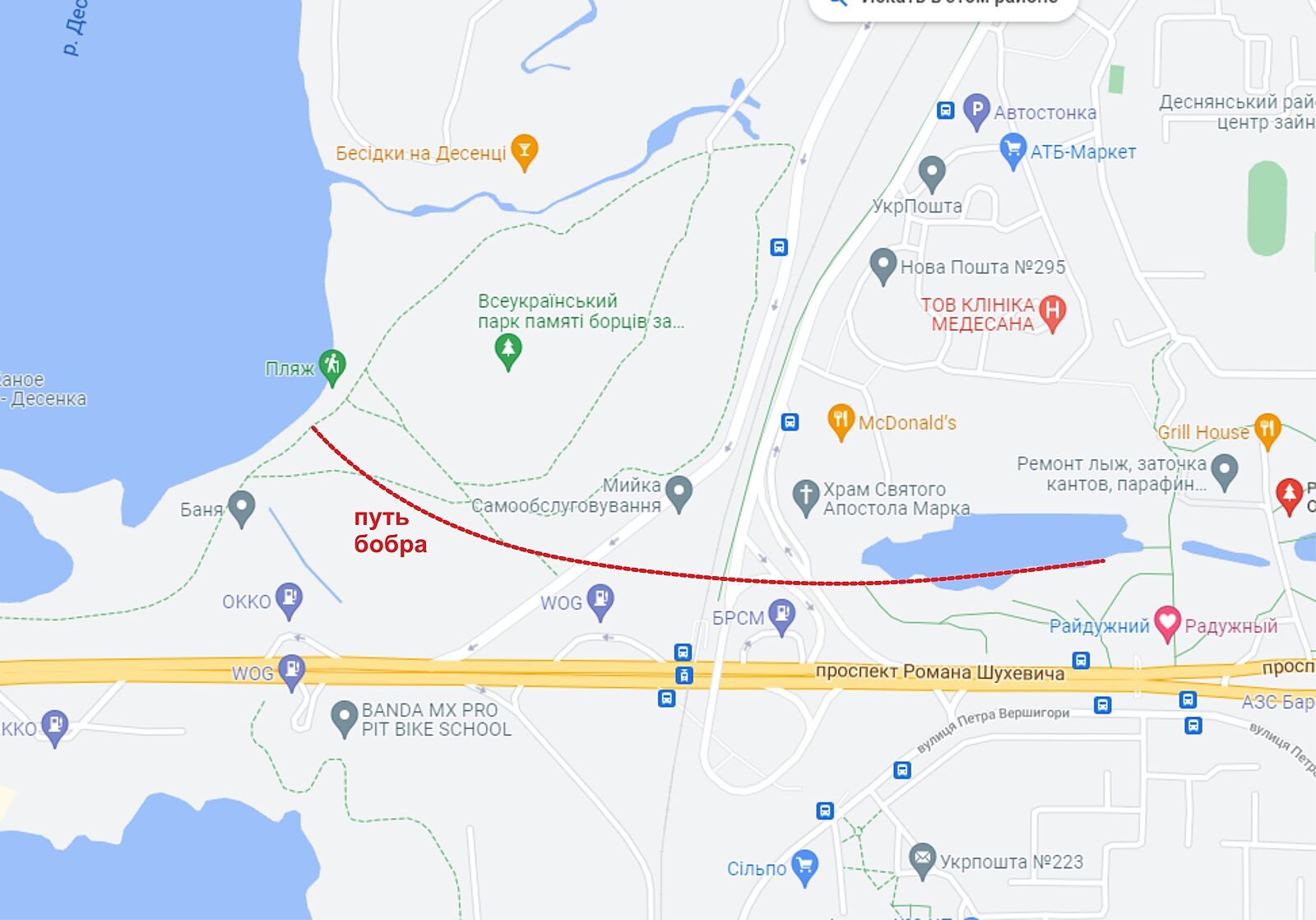 У нас в парке Победа живет бобер, раньше двое было. Никто не переселял их туда, они наоборот вредят, сожрали кучу деревьев. Спрашивала у рабочих парка о них когда-то - все животные и птицы сами тут обустроились, их никто не завозил. Уверена и на Троещине так же