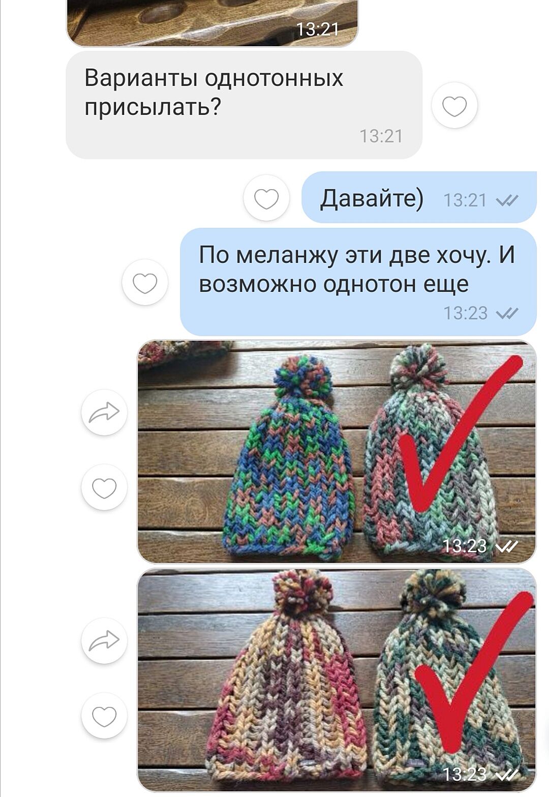 Ради интереса: как считаете, какие шапочки должен был положить в заказ продавец? Конфликта нет, вопрос исключительно о нюансах восприятия)