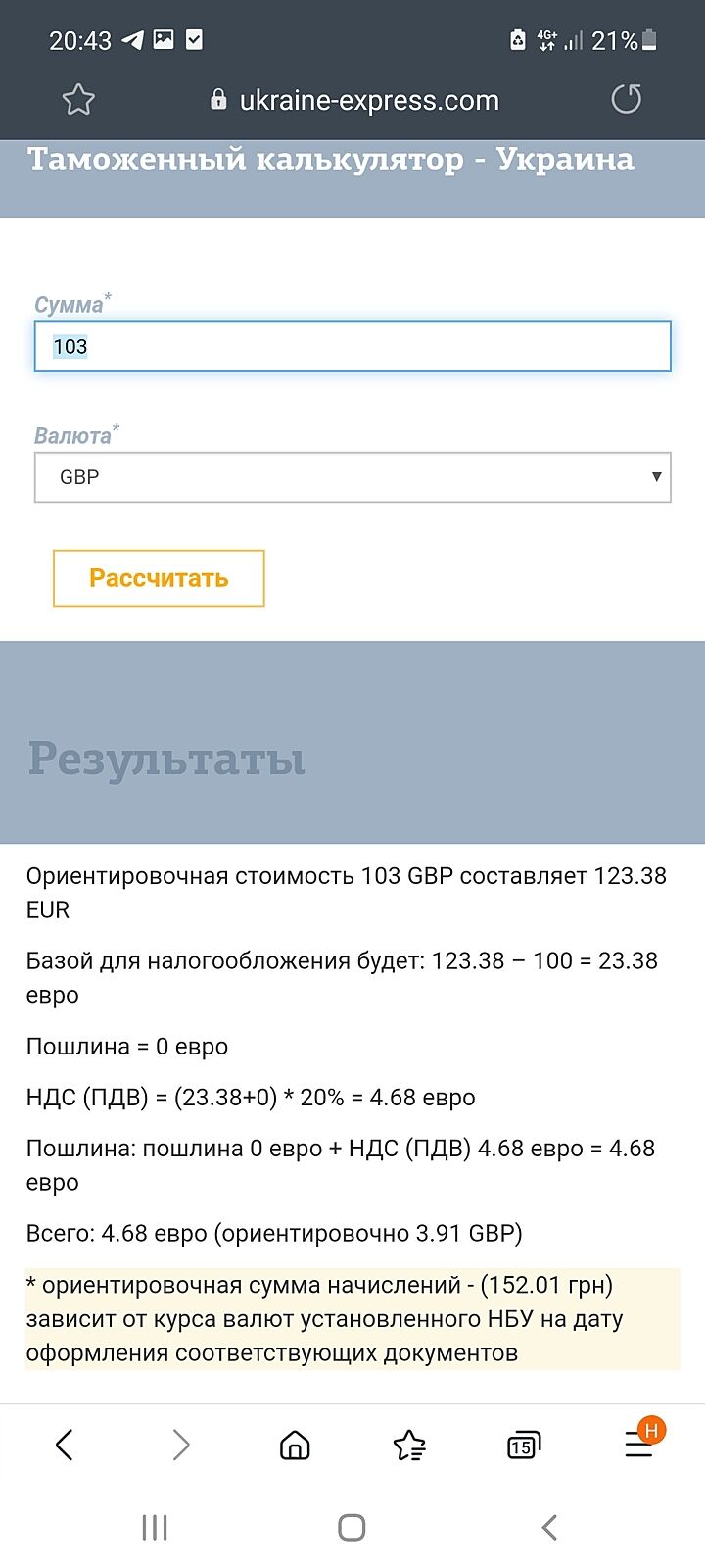 Посылка реально стоит 103 фунта, 23 фунта сверх х 20%, так считать?
