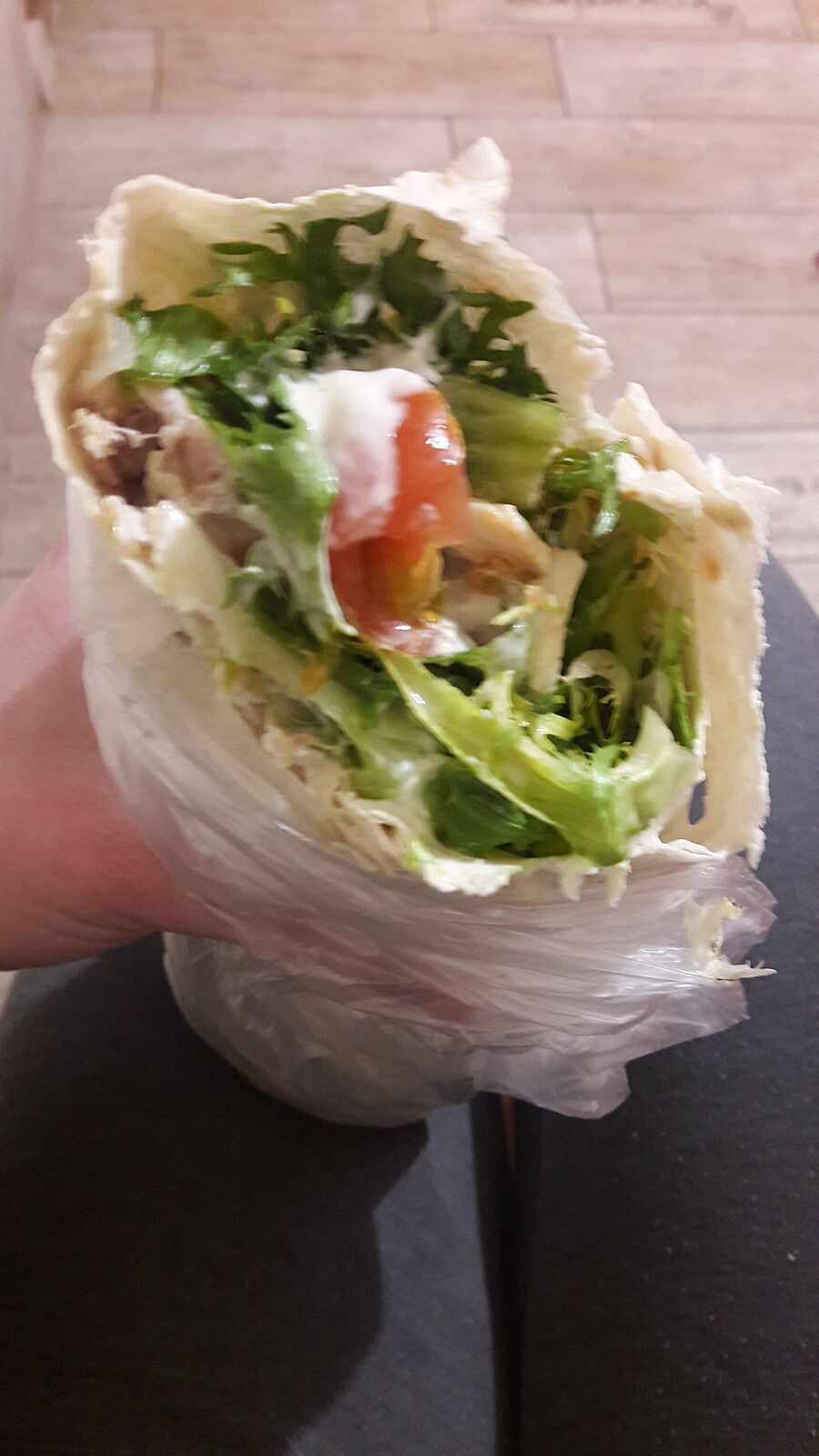 А я на ужин готовила мега быструю шаурму. Голодная, уставшая, по пути купила пачку салатной смеси, черри, лаваш, сметану. Дома было полтора запеченных куриных бедра. Соус не делала, сметаны сверху, на нее кориандр, паприку, сухой чеснок и соль. Быстро все завернула, на сухую сковороду и есть. Я давно с таким аппетитом не ела)))