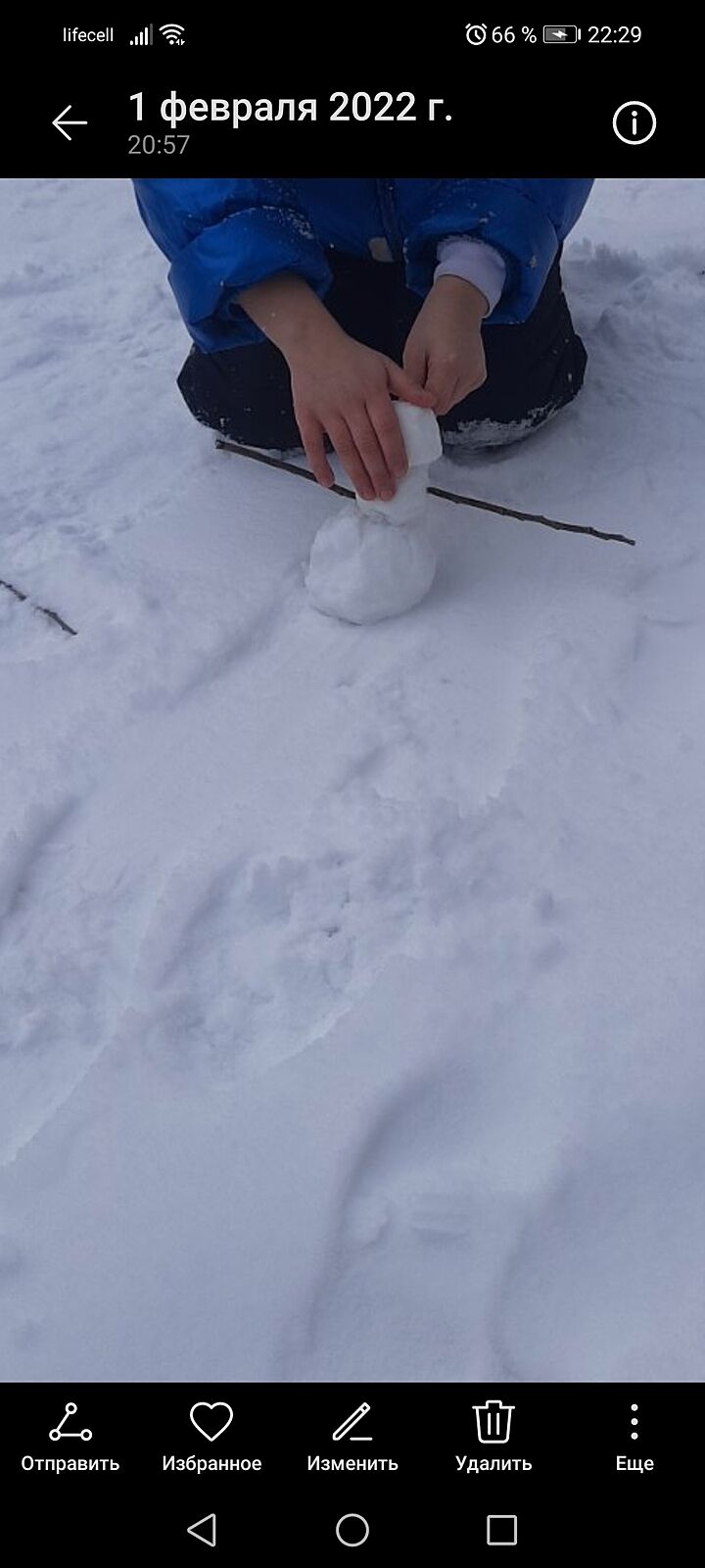 Пошли муж с дочкой гулять на горку, решили снеговика слепить (впервые не их пластилина), снег сухой, лепится плохо, снеговик вышел маленький. Вставляет мой муж веточку - ручку, а дочка - это ручка не подходит, она короткая, он этой ручкой ничего себе не почешет