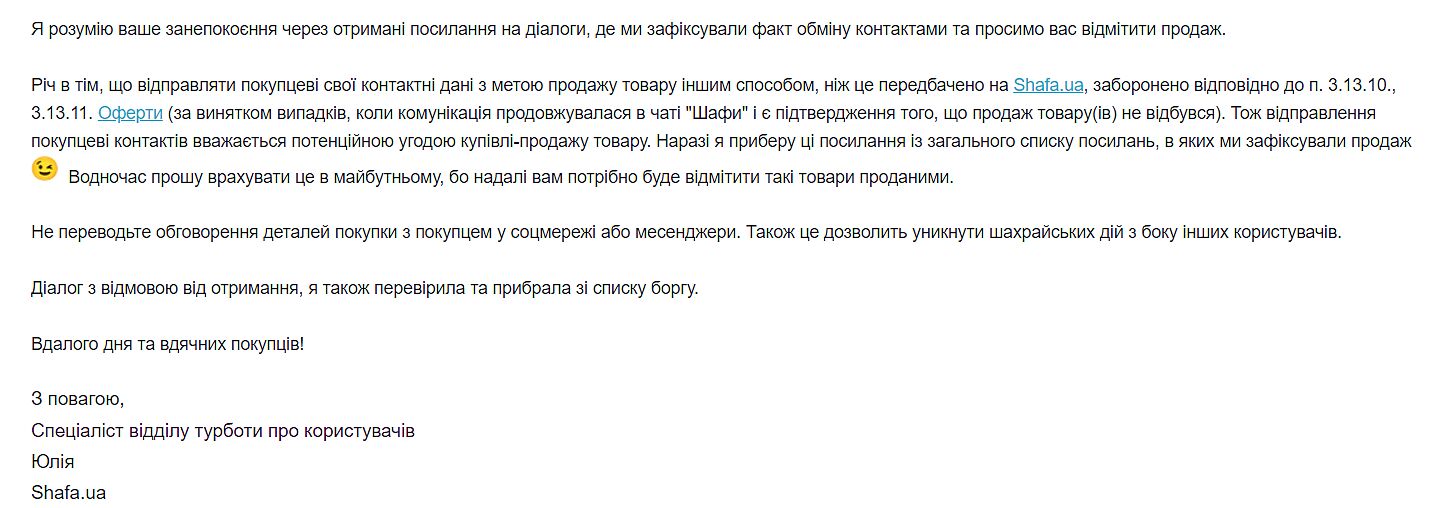 Вы писали по этому адресу на почту? support@shafa.com.ua мне вроде отвечают более-менее