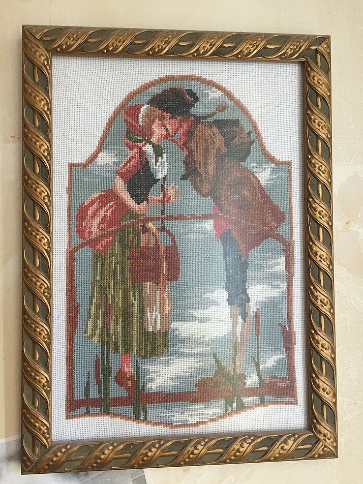 Стираю аккуратно и разглаживаю на стенке ванны пока стечет, потом с изнанки глажу утюгом. Потом в багетку, да под стекло лучше и лучше стекло антиблик.