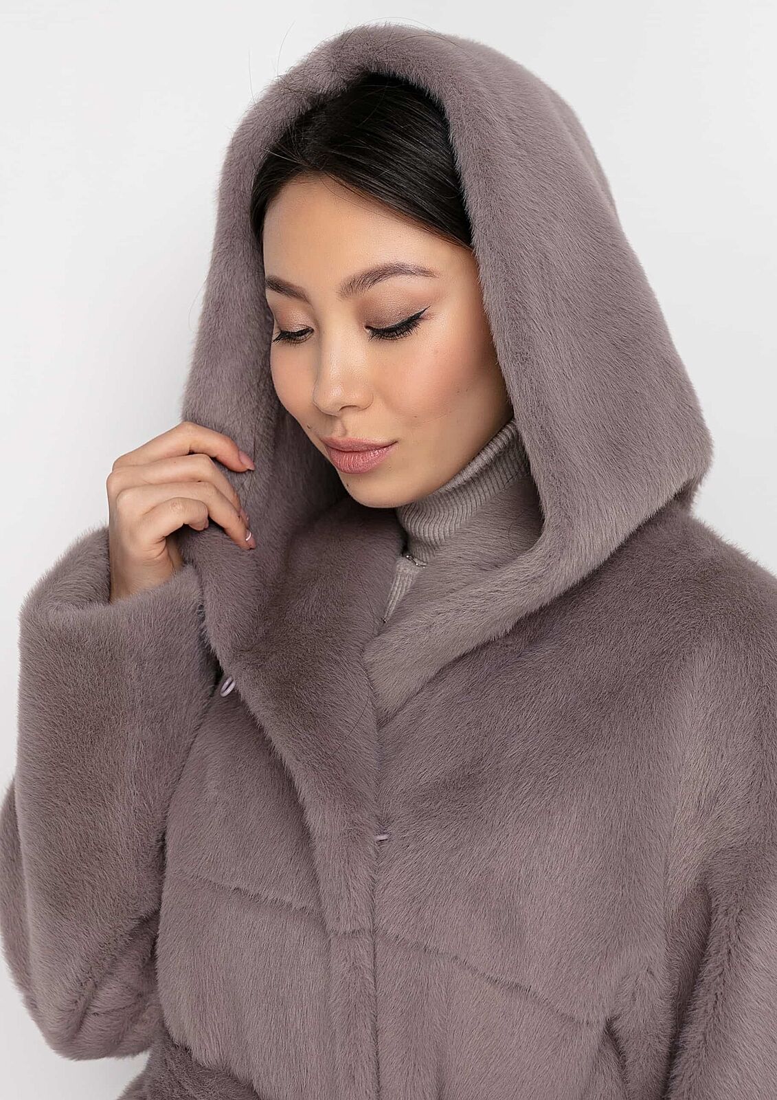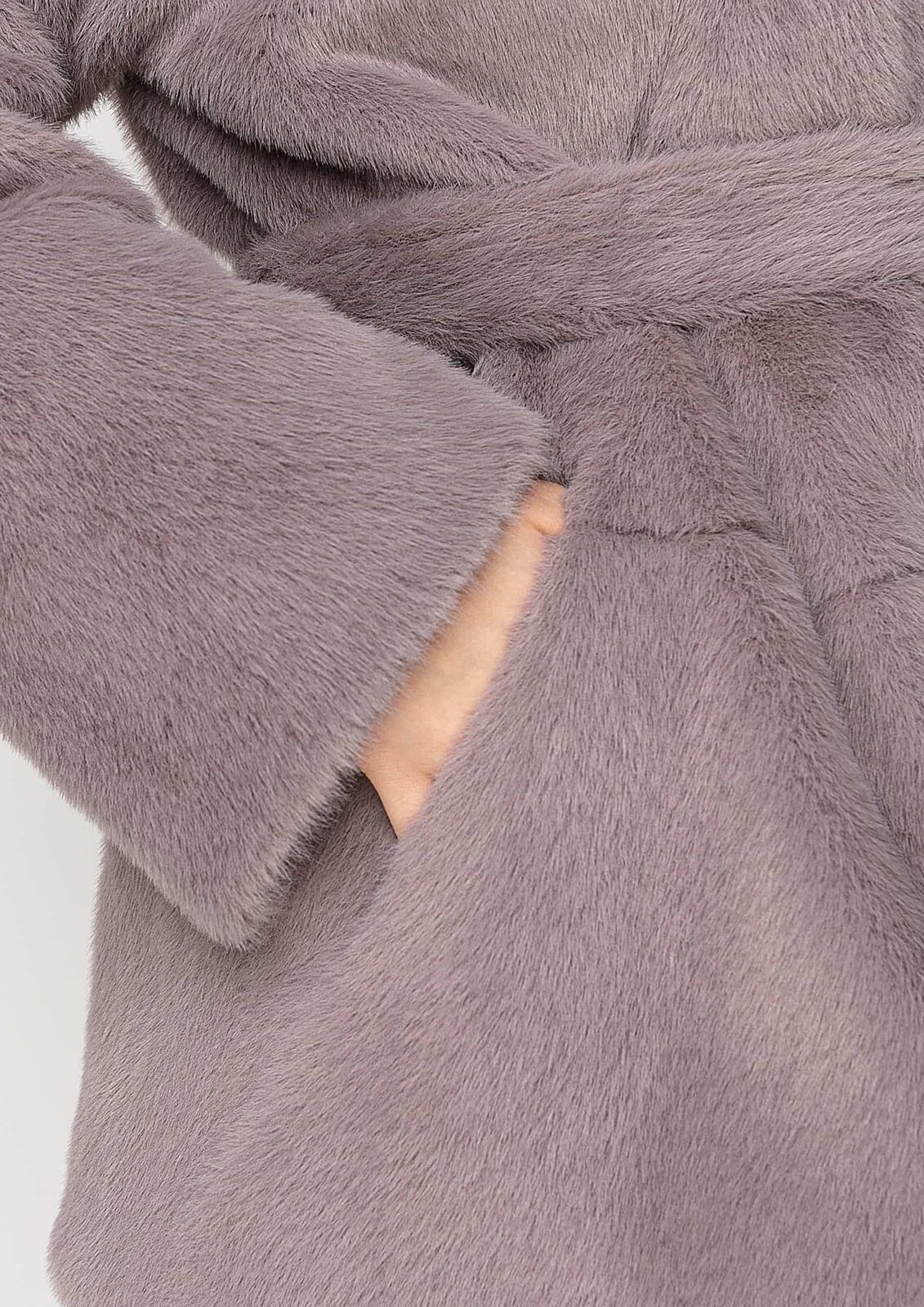 По 2 кармана по бокам, капюшон, мех на капюшоне отстегивается, кстати, мех хотя и искусственный, но выглядит очень красиво, недешево.