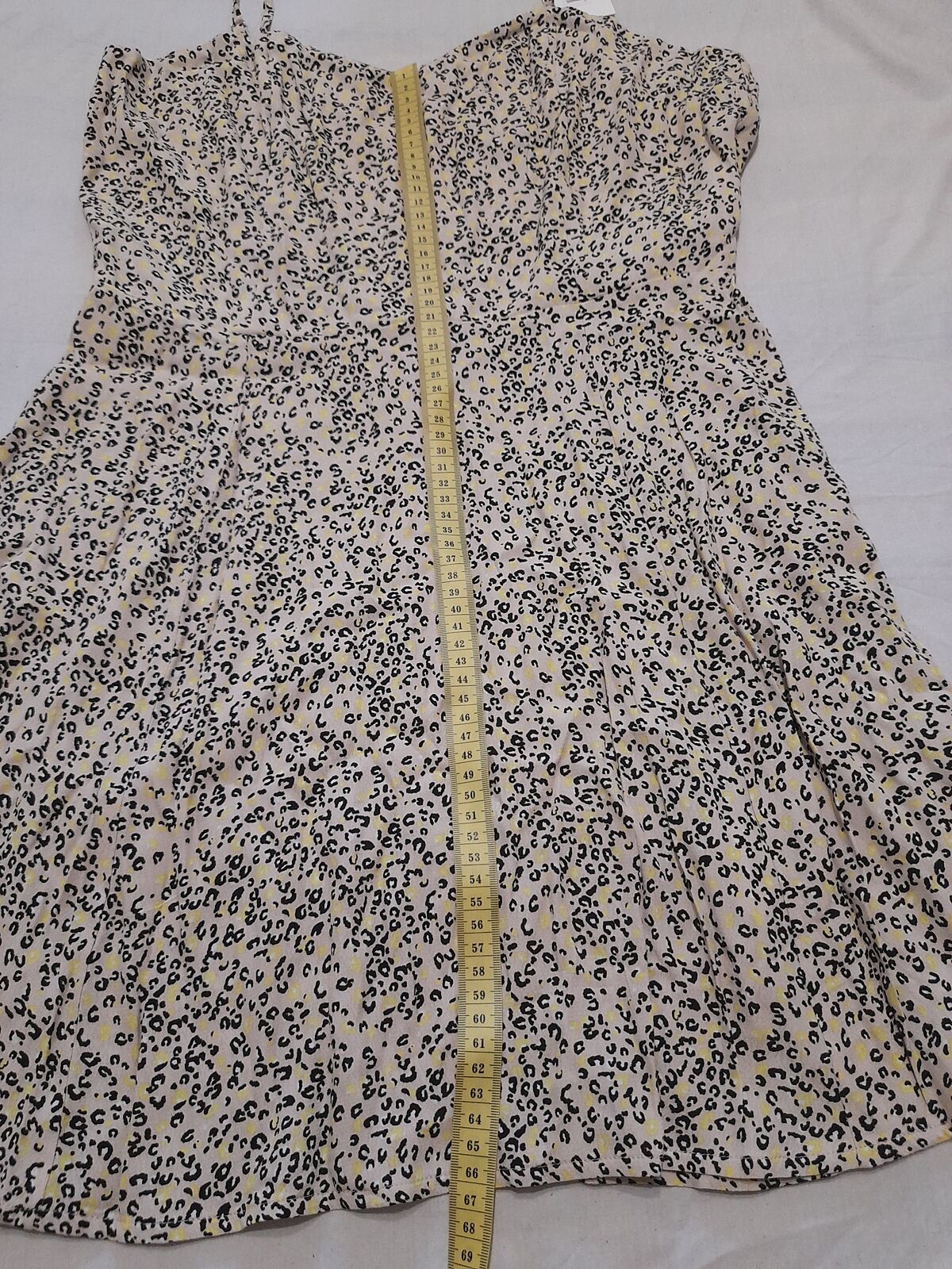 Платье с плиссированной юбкой без рукавов с эффектным принтом по всей поверхности, легкими рукавами и драпировкой. Регулируемые тонкие бретельки, легкая складка спереди, миниатюрный силуэт и швы.