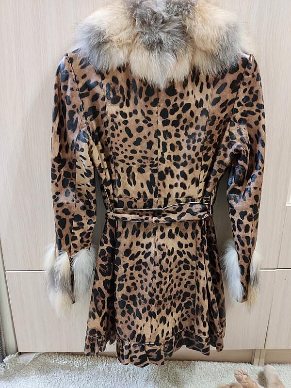 Крутой кожаный плащ пальто