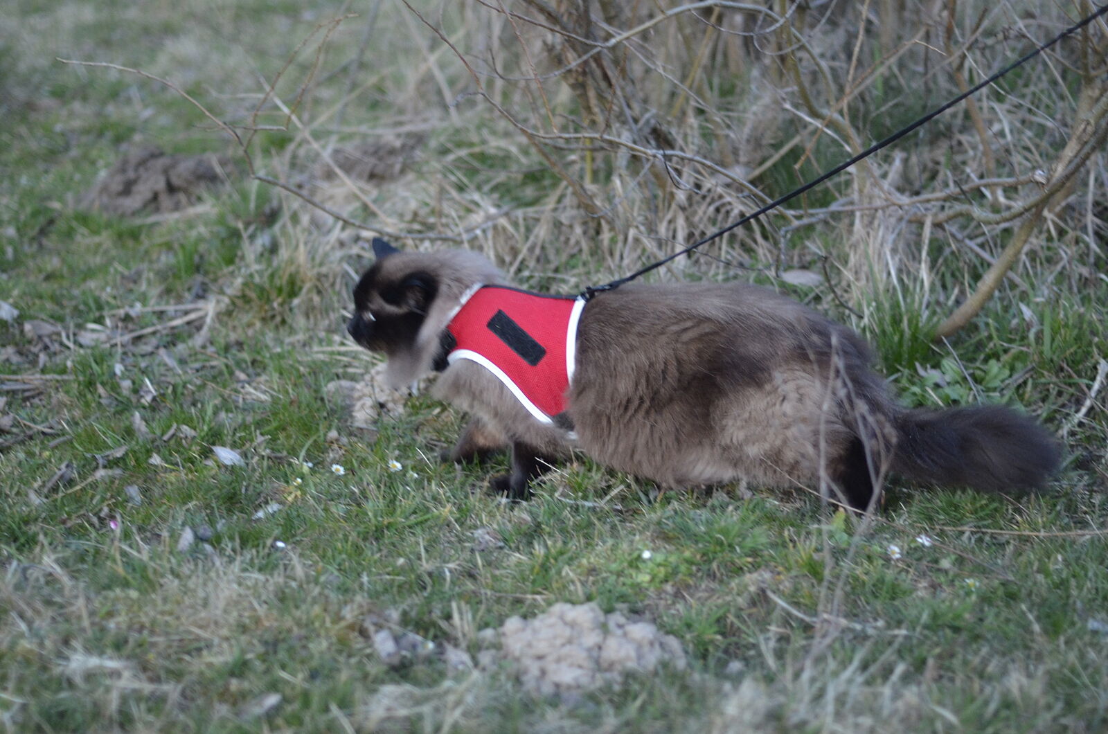 А почему кота не посадить на шлейку. Он же с вами. Ему так проще