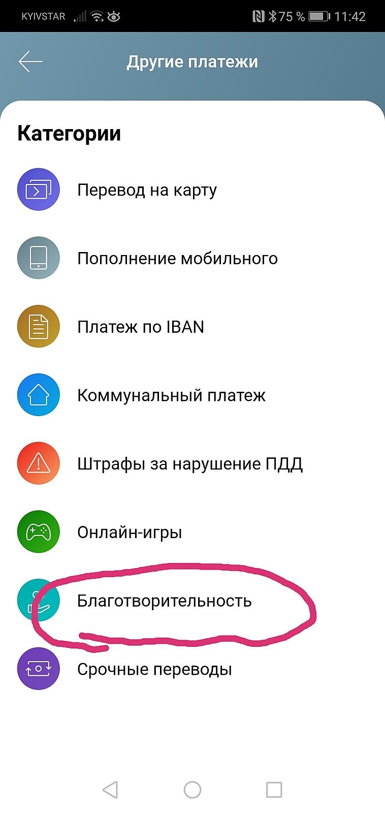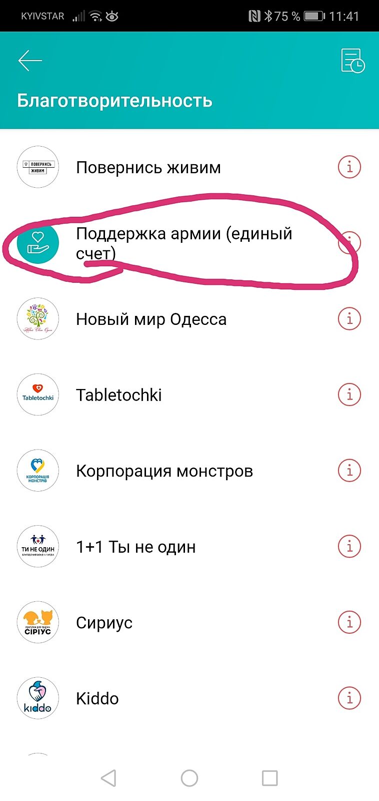 • Приват24, меню Сервіси — Добро — Допомога ЗСУ