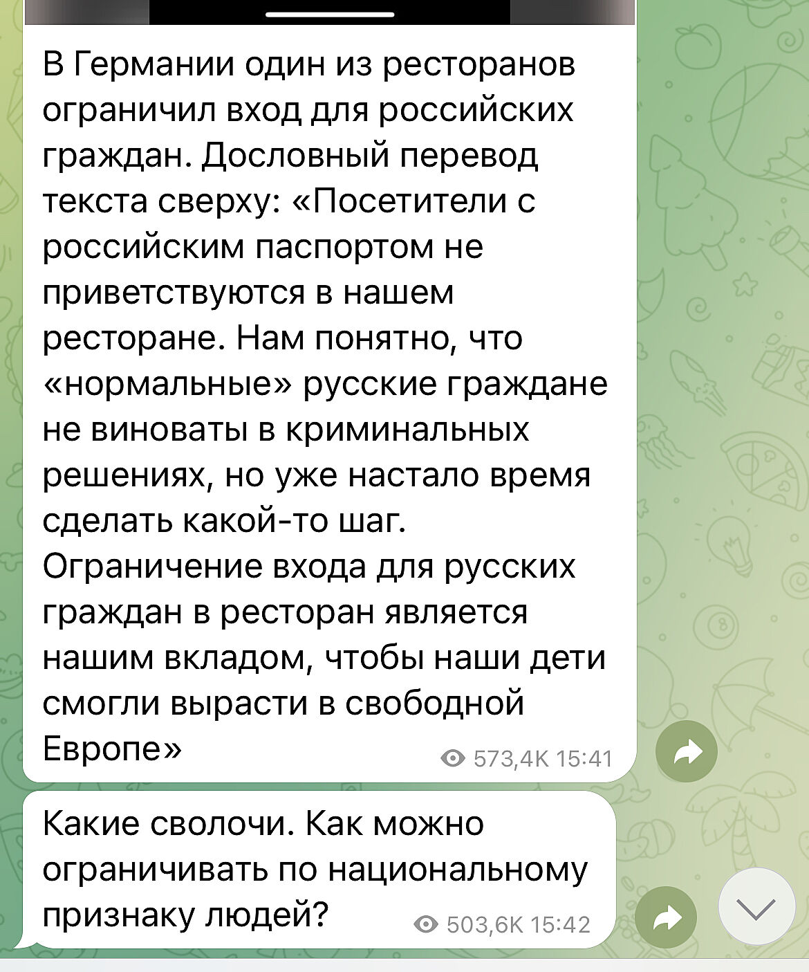 А в той час якась росіяночка плаче що і кафешці німці не обслужили через національність. Яка журба, яка печалька, блять