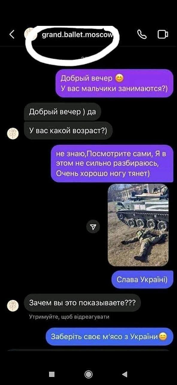 Мені сьогодні цю інформ війну показала донька , я чуть не померла від страху . Наші заходять наприклад на сайт якоїсь пластичної хірургії і пишуть в чаті : скажите пожалуйста , а еще можно что то сделать с єтими ягодицами ? І викладують фото рашистського жмура з відірваною дупою . Бог мій я там такого надивилась , волосся дибки .І так заходять на ресторани , балетні школи -предлагають їм мальчиков з хорошою розтяжкою ...