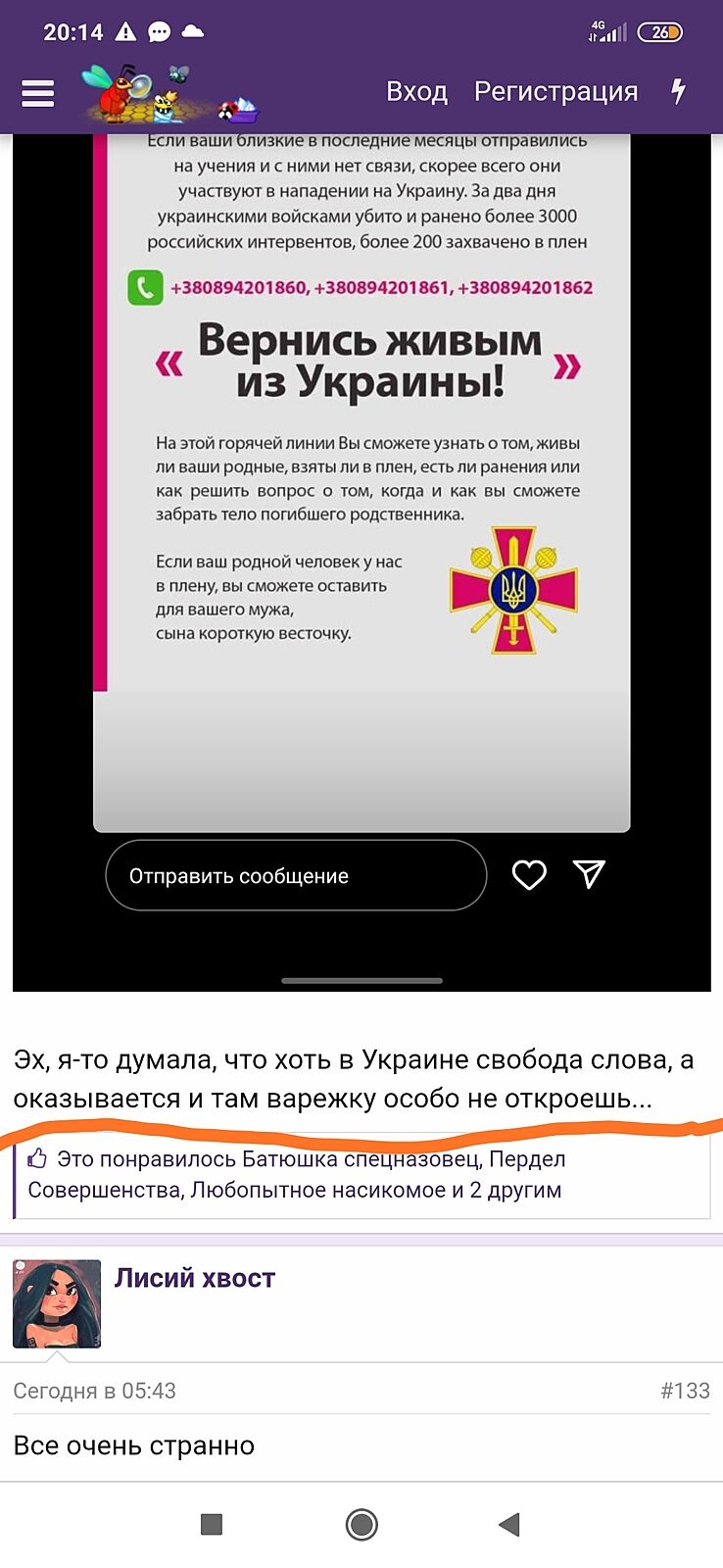 Зайшла на ФСН-форум (так звана ’багиня’, досить популярний ресурс), думала, що там є досить велика українська аудиторія, сама я там не зареєстрована, але стало цікаво, чи там розповідають правду про війну і чи обговорюють це питання. І ось що прочитала, скріни додаю. Перейшла за посиланням, Гордон дійсно таке пише в своїй статті про сайт ’Повернися живим’. От для чого він таке написав? Чи я чогось не розумію?