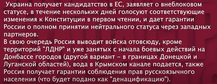 Я вот тут прочитала, что Подоляк предполагает. Вроде как в раше подумывают над военным положением. Логично - митинги запрещены, в инете будут всех чистить. Вот может тогда там немного начнут прозревать жители?
