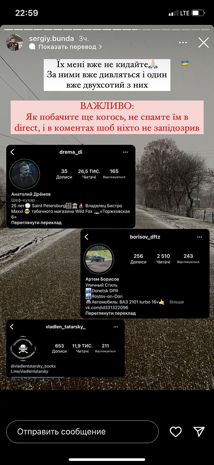 Девочки, в сторис просит инфу о расположении наших ЗСУ, блочим скотину