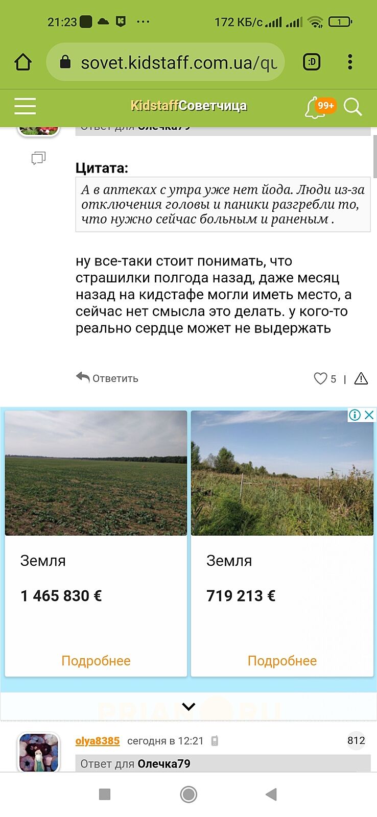Девочки,не знаю почему,у меня выскакивает реклама,сайт российский,может куда-то заходила -не знаю.Как могут НАШИ. земли продаваться на рос.сайте?Может я ошибаюсь?