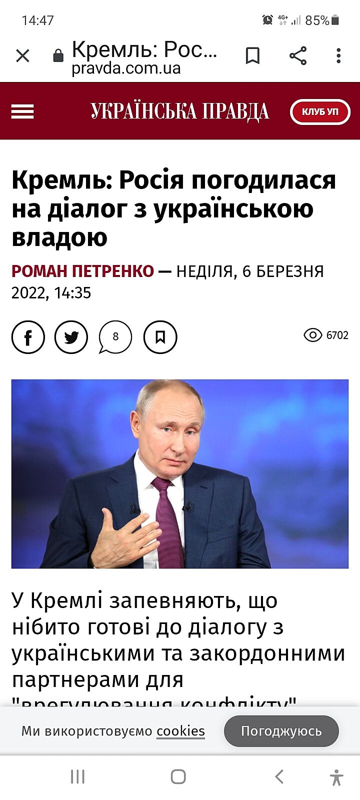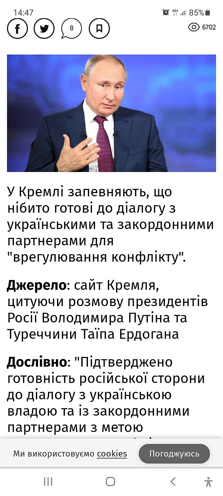 на який мир? Хуйло хоче ’мир’ на своїх умовах. Рашистський ’мир’ - це смерть України і українців