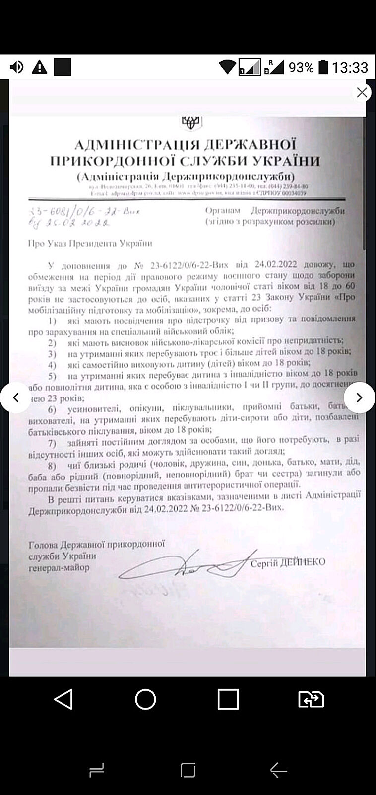 Кто из ваших мужчин с белым военным пересекал границу и какую? Выпустили? Спасибо